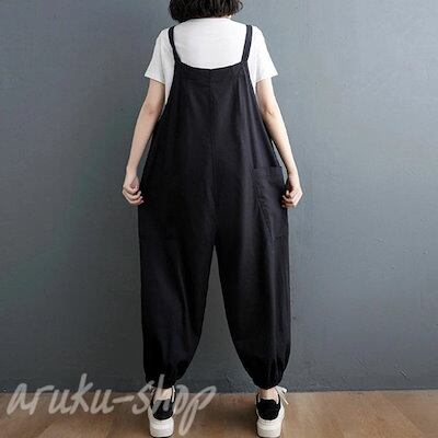 サロペット パンツ 大きいサイズ オーバーオール オールインワン ビッグシルエット 絞り裾 マタニティ 綿麻 レディース 薄手 サロペットパンツ パンツドレス 体型カバー ガウチョパンツ ゆったり 9