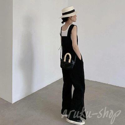 オールインワン レディース 無地 オールインワン 春夏 夏 脚口 パンツ ストレート オーバーオール 薄手 秋 ワイド