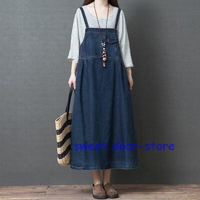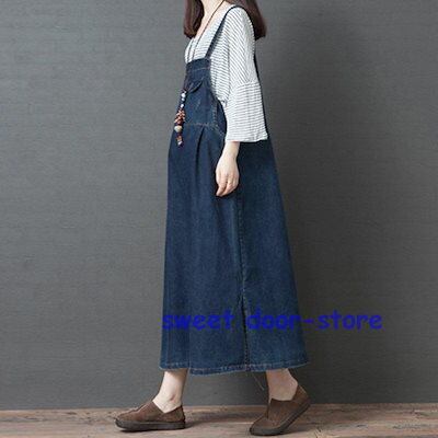 【本日限定】サロペットスカート レディース デニム ワンピース ロング丈 オールインワン キャミワンピ オーバーオール デニムスカート 体型カバー 無地 ゆったり