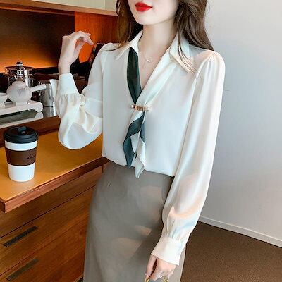シフォンブラウス紫外線対策シアーシャツ春日焼け止め 冷房 シフォン シャツ おしゃれ 百掛け 通勤 工作 ゆったり 着痩せ Vネック カットソー レディース 長袖 ブラウス