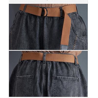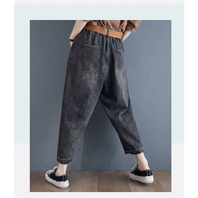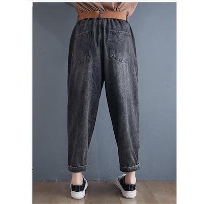 デニムテーパードパンツ レディース 九分丈 ボトムス ウエストゴム ベルト付き 美脚パンツ 無地 大