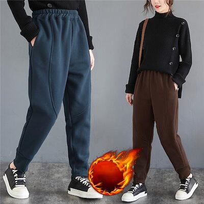 レディース テーパードパンツ 裏起毛 極暖 あったかい 防寒 美脚 ゴムウエスト 綿混紡 暖パン フリース 着やせ 細身 ハールーン風 保温