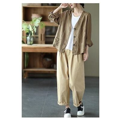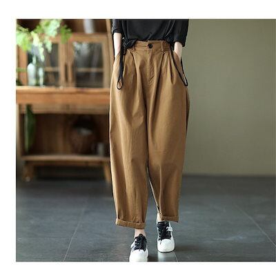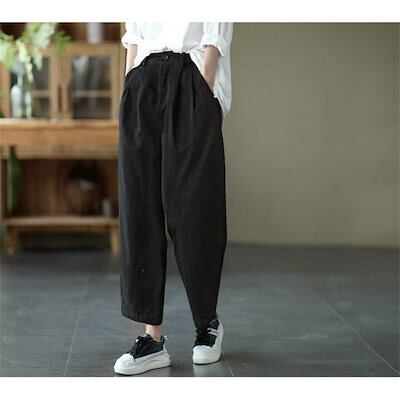 サルエルパンツ ボトムス テーパードパンツ レディース ポケット付き ゆったり 大きいサイズ M2