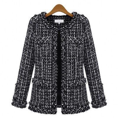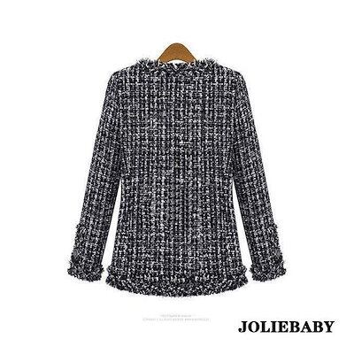 ノーカラージャケット レディース コート 千鳥格子 ツートーン クール カッコいい ブラック カジュアル アウター レディース 通勤 通学 韓国風