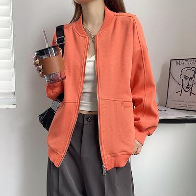 スタジャン レディース スウェット カーディガン トレーナー トップス パーカー ジャケット カットソー 春 秋 レディース ライトコート 羽織り ビッグシルエット 体型カバー