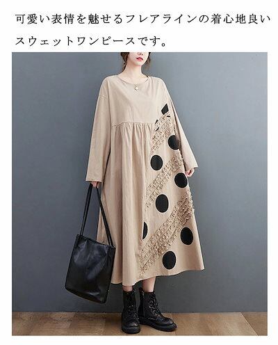シャツワンピース ワンピース ロングワンピ 切り替え レディース マキシワンピース ロング丈 ゆったり 体型カバー Aライン マキシワンピース 長袖 秋 フリル 黒 長袖ワンピース ゆったり ドット