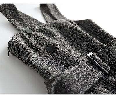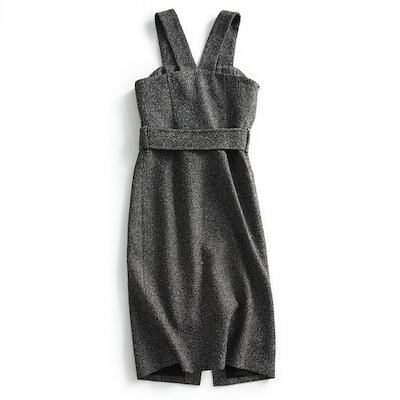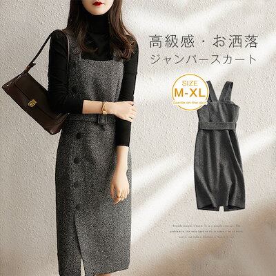 ジャンパースカート スクエアネック レディース 大人 上品 ワンピース ジャンスカ 春秋冬 ロング 膝丈 サイドスリット ノースリーブ ツイード風 ベルト付き 通勤 オフィス OL レイヤード 重ね着