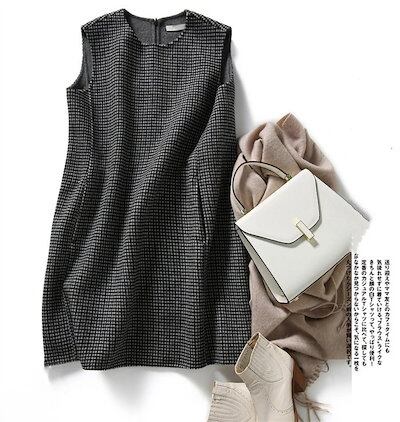 ジャンパースカート 大人 グレンチェック ワンピース レディース 春秋冬 膝丈 ツイード風 ベストワンピース ノースリーブ ワンピ 通勤 オフィス OL レイヤード 重ね着 厚手 ゆったり 事務所 キ