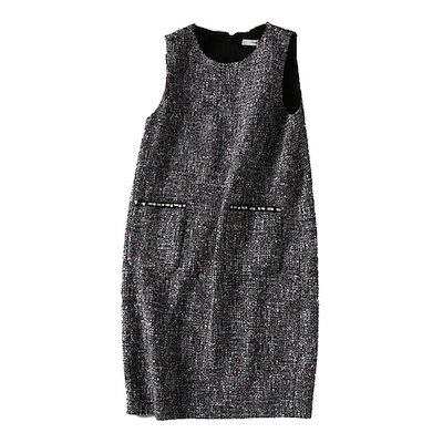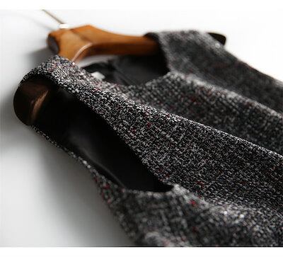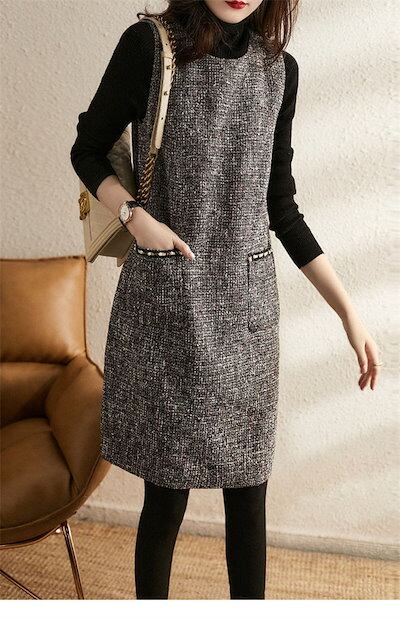 ジャンパースカート 大人 ツイード風ワンピース レディース 秋冬 膝丈 上品 ジャンスカ クルーネック ノースリーブ 通勤 オフィス OL レイヤード 重ね着 女性 ゆったり 事務所 キレイめ カジュ