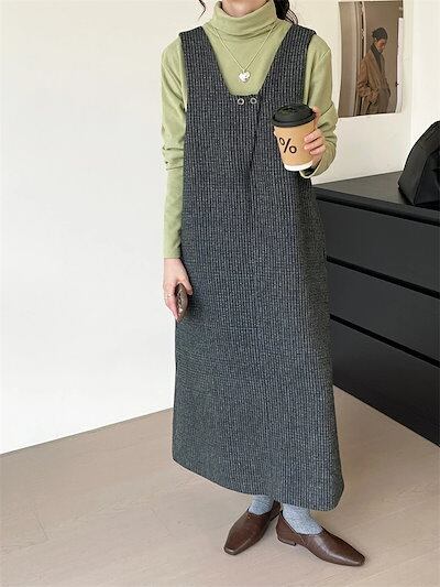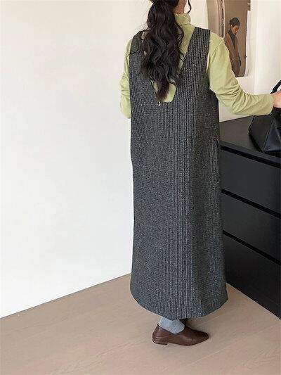ジャンパースカート 大人 マキシワンピース レディース 前後2way vネックジャンパースカート ギンガムチェック ロング丈 ツイード ワンピース Aライン 大人 サロペットスカート 春秋冬 上品 通