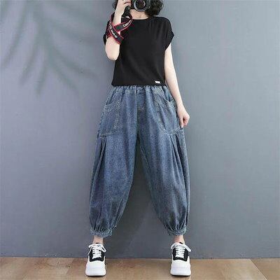 レディースパンツデニム春夏バルーンパンツレディースパンツデニムサーカスパンツ大きいサイズあったかバギーパンツデニムパンツバルーンウエ