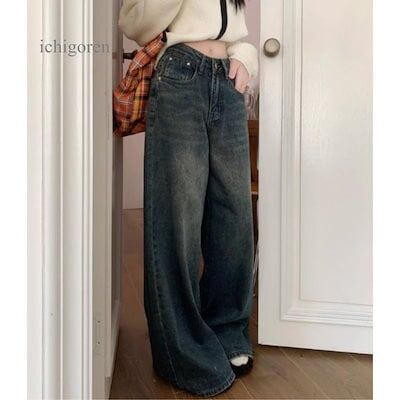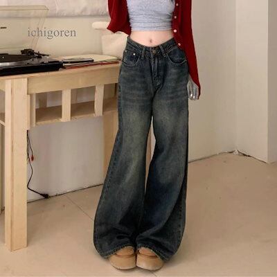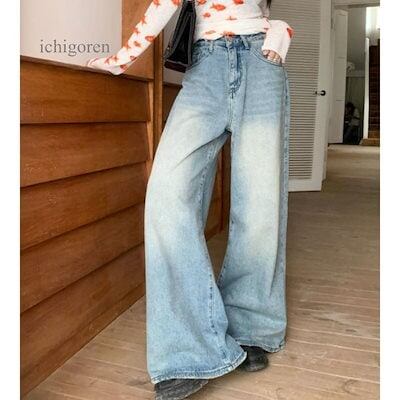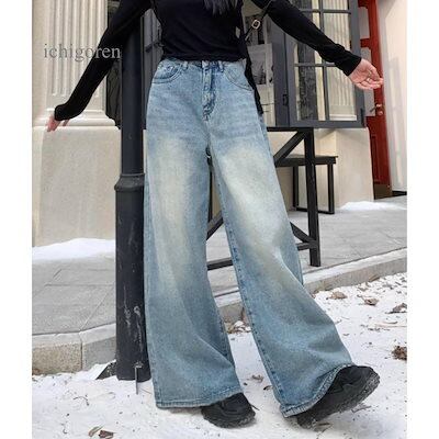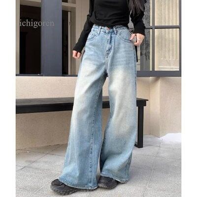 デニムパンツ ロング ワイド バギー フレア 太め ゆったり レディース 韓国ファッション シンプル 大きいサイズ ヒップホップ ルーズ 体型カバー