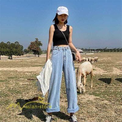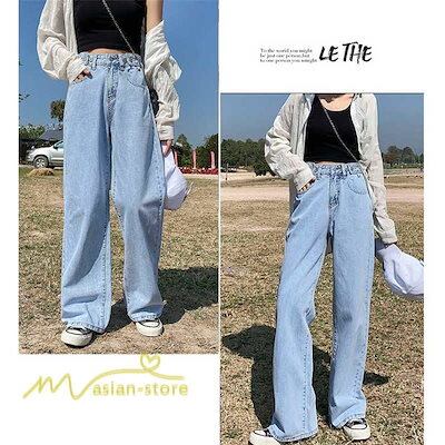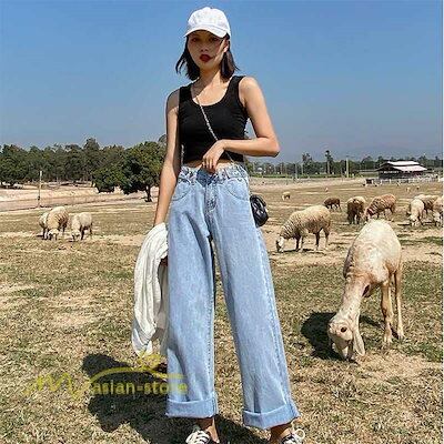 デニムパンツ ストレートパンツ バギーパンツ ワイドパンツ ジーンズ ジーパン ロングパンツ ボトムス カジュアルパンツ ハイウエスト レディース
