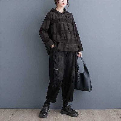 「ファットガール」 2023秋 レトロ パーカー ドッキング スウェット フード付き 大きいサイズ レディース トップス メガ割