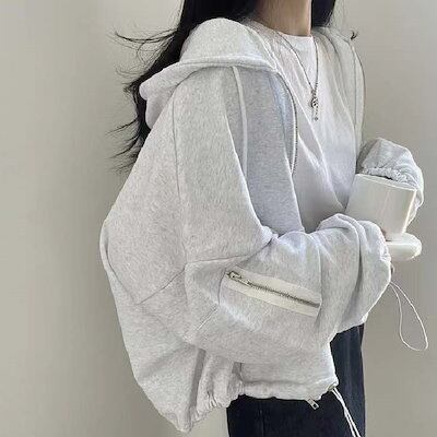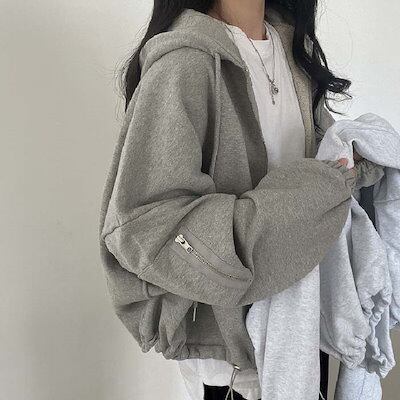 ジップアップパーカー レディース 秋 春 パーカー ジャケット スウエット フード付き パーカー コート ショート丈 コート トップス 大人 軽量 シンプル 無地 普段着 着回し力 着痩せ 体型カ