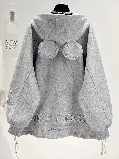 品質いいな新品 フリース スウェット カーディガン 新作 刺繍 ミッキーの耳 フード付き ゆったり 万能 厚手 コート レディース長袖ミッキー