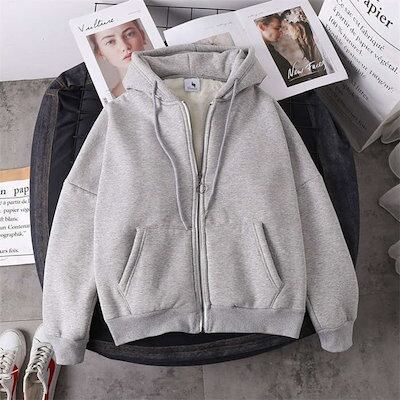 裏起毛 パーカー アウター スウェット ジャケット レディース 厚手 長袖 ゆったり ジップアップ カーディガン 秋冬 無地 フード付き ジップ あったか スエット 裏ボアパーカー フードパーカー ジ