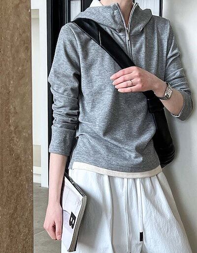 パーカー 薄手 長袖 ハーフジップ スウェット プルオーバー フード付き スウェットパーカー カットソー トップス トレーナー フーディー 無地 オシャレ お洒落 可愛い カジュアル レディースファッ
