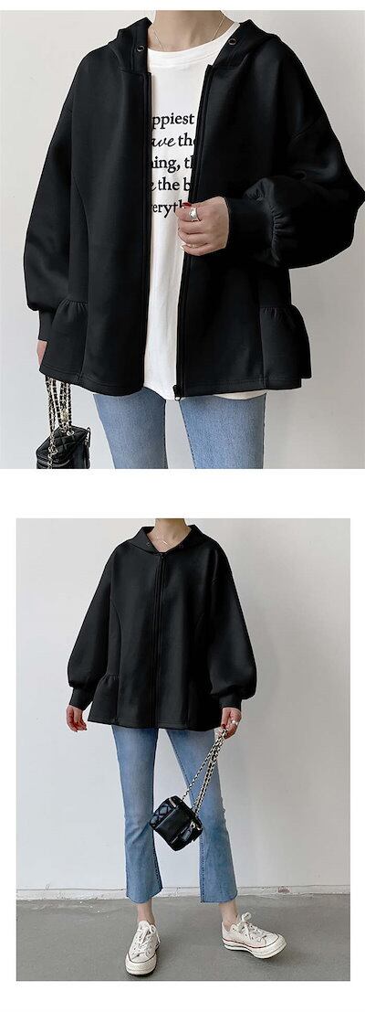 トップス パーカー ジップ 長袖 スウェット 無地 レディース フレアジップパーカー ダンボール きれいめ ジップスウェットパーカー ジップアップ フード ジップアップパーカー ライトアウター フレア