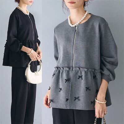 パーカー レディース スウェット トレーナー ジップ ジャケット ノーカラー アウター トップス 前開き 春 秋 冬 長袖 フリル フレア 可愛い 羽織り 通勤 おしゃれ シンプル きれいめ ファスナ
