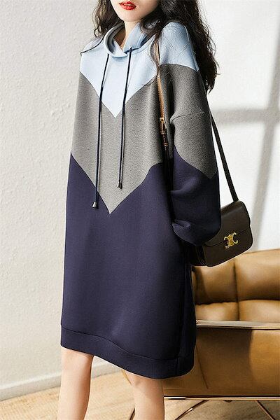 パーカー ワンピース レディース チュニック フード付き パーカーワンピ 秋冬 膝丈 長袖 ポケット きれいめ スウェット 可愛い ドロップショルダー フード トレーナー 配色 ルームウェア お洒落