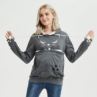 猫 抱っこ服 パーカー 抱っこ紐 レディース メンズ 猫 抱っこ ペットスリング パーカー 猫 ペット ポケット パーカー ブランケット 長袖 猫入れポケット付き 防寒 犬 猫 プルオーバー 毛粘