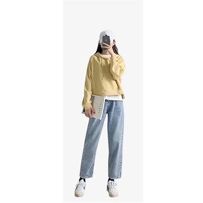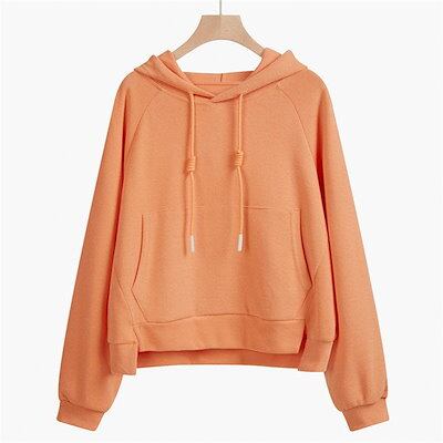 パーカー レディース トップス フード付き ショート 長袖 カジュアル 可愛い スリット フェイクパーカ ゆったり おしゃれ シンプル