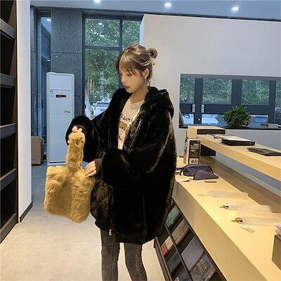 ゾン ボア もこもこ ボア レディース アウター 韓国風 フード付き フス ショート丈 羽織り 防寒 大きい