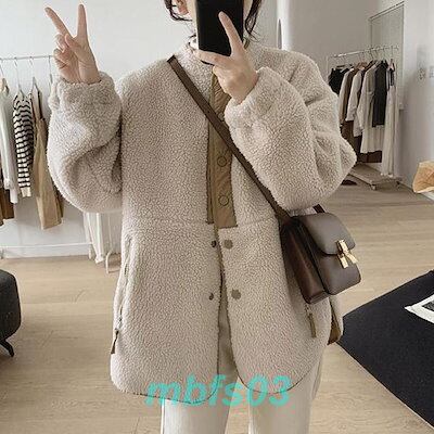 ボアジャケット ボアコート ジャケット アウター もこもこ 防寒 ノーカラー レディース カジュアル 秋冬 通勤 通学 アウトドア