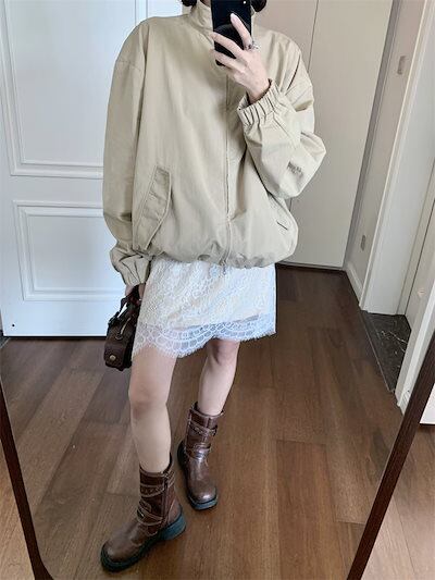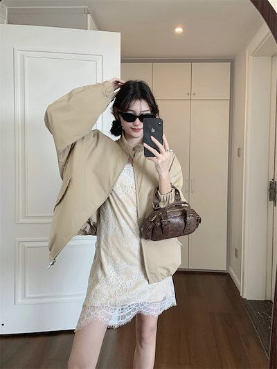 2024 レディースファッション 秋 ジャケット アウター 冬 ショートコート トレンチ ハイネック ジップ チャック 長袖 ベージュ おしゃれ かわいい お出かけ