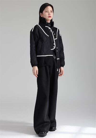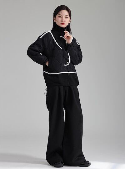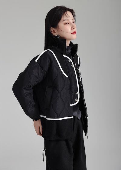 【J.Fashion】 2024春新品 小柄 ニット セーター 中綿コート 巾着 ドッキング色 ジャケット レディース アウター 関連商品は店で購入可能