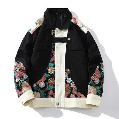 韓国 アウター チャイナ風スタジャン 春秋 ジャケット メンズ 花柄刺繍 アウター 男女兼用 スカジャン レディース