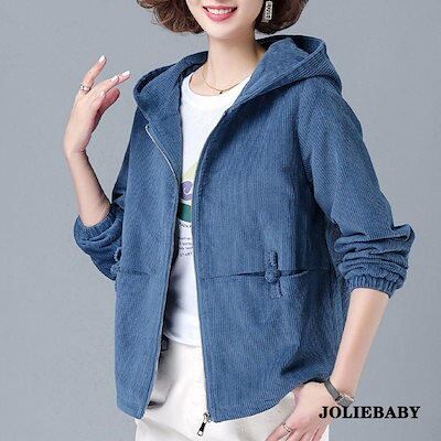 ブルゾン レディース 婦人服 アウター ジャケット フード付き ジップアップ ファスナー 袖口ゴム コーデュロイ おしゃれ かわいい