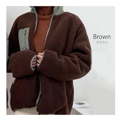 ボアジャケット アウター リバーシブル レディース ブルゾン フリース ビッグシルエット オーバーサイズ シンプル ストリート カジュアル ミリタリー 服