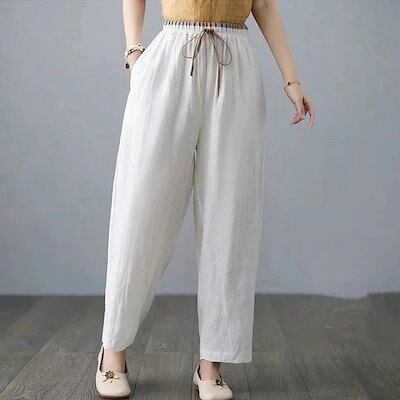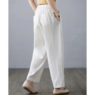 作トレンドボトムステーパードパンツストレートサルエルパンツウエストゴムレディースカジュアルポケット付きったりン綿九分丈薄カジュアル