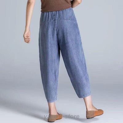 サルエルパンツ レディース デニム クロップドパンツ テーパード アメカジ ズボン ウェストゴム ゆったり 大きい 体型カバー リラックス ボトムス 春 夏 秋コー