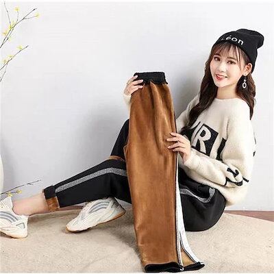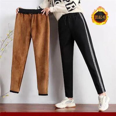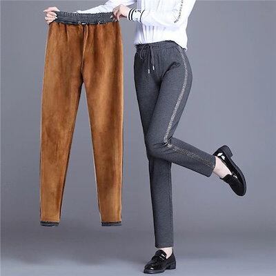 レディーステーパードパンツ裏起毛極暖あったかい防寒脚ゴムウエスト九分丈暖パンフリース着やせ細身ハールーン風保温
