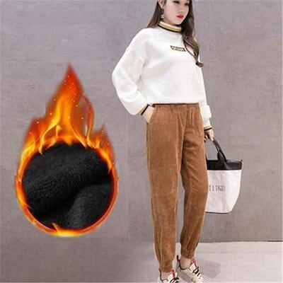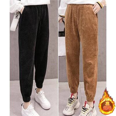 レディーステーパードパンツ裏起毛極暖あったかい防寒脚ゴムウエストフリース暖パンコーデュロイ着やせ細身ハールーン風保温