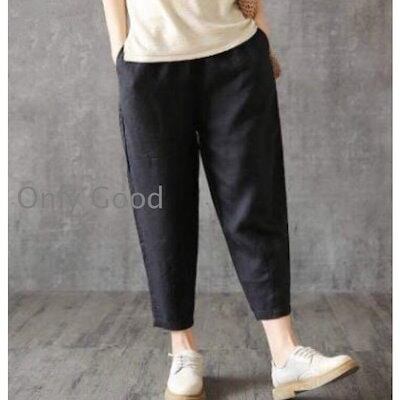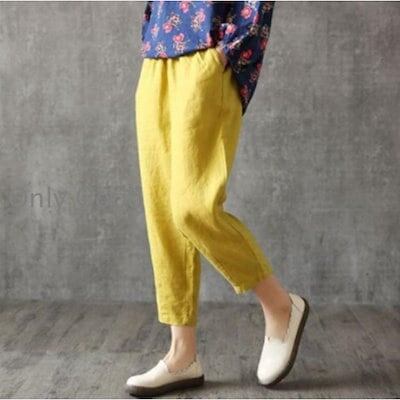 ボ パンツ ズボン レディース テーパードパンツ 七分 綿麻 綿 麻 無地 付き コットン ン カジュアル 夏