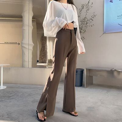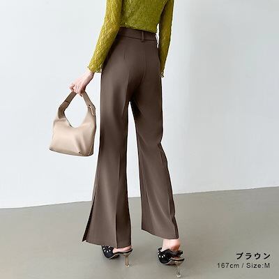 フレアパンツ スリット入り スラックス パンツ きれいめ サイドスリット レディース ブーツカット サイドスリットパンツ スリット ベルボトム ボトムス 美脚 脚長 オフィス オフィ
