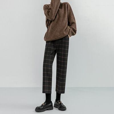 ボトムス センタープレス テーパード アンクル丈 チェック柄 ハイウエストパンツ カジュアル 秋冬 おすすめ レディース オシャレ トレンド 人気 プチプラ 韓国ファッション
