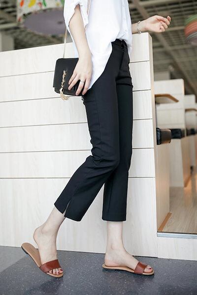 コーデュロイ 【】 スーツパンツ ストレート 裾スプリット 八分丈 おしゃれ レディース 通勤 スラックス ハイウエスト ママパンツ