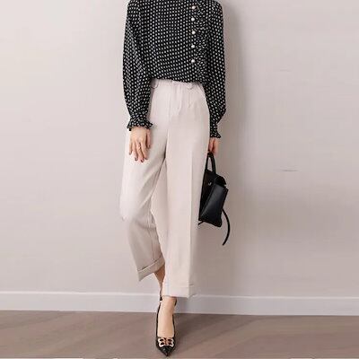 レディースハイウエストスーツパンツ脚テーパードパンツ体型カバーボトムスパンツ着痩せストレート高見えオフィスカジュアル大人スラックス
