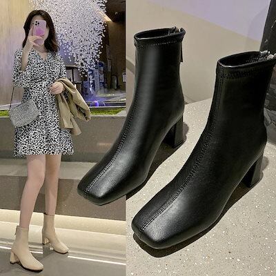 【2枚購入で 2oo円OFF!】ショートブーツ 秋冬新作 レザー マーチンブーツ レディーズ 大きいサイズ ショートブーツ ハイヒール バックジップ ファッションブーツ 韓国ファッション