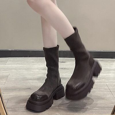 【2枚購入で 2oo円OFF! 】新作 ショートブーツ 厚底靴 レディース ブーツ ミドルヒール 太ヒール ローヒール 黒 ハイヒールブーツ マーディンブーツ 革靴 福袋