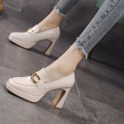 人气 新作スタイルアップ!ヒールパンプス 秋の新しいブリティッシュスタイル厚底浅い口ラフヒールハイヒール作 走れるパンプス ローヒール シューズ 痛くない レディースヒール