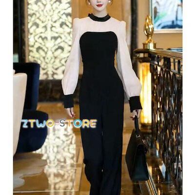 かっこいい パンツドレス オールインワン レディース 長袖 パーティードレス 結婚式 お呼ばれドレス パンツ 大きいサイズ 3L カシュクール 黒