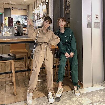 レディース オールインワン 春秋 おしゃれ スリム見え コンビネゾン カジュアル カーゴパンツ