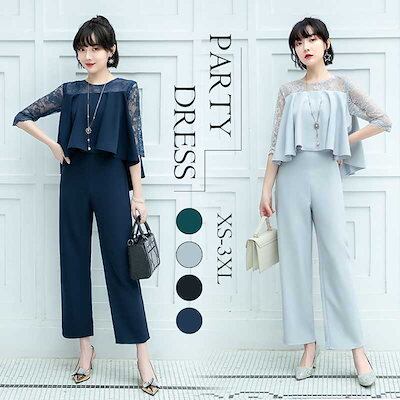 オールインワン テーパードパンツ 結婚式 ロングパンツ 袖あり ワイドパンツ レディース オールインワン パンツ パンツスーツ フォーマル 体系カバー 大きいサイズ パーティー 披露宴 二次会 20代