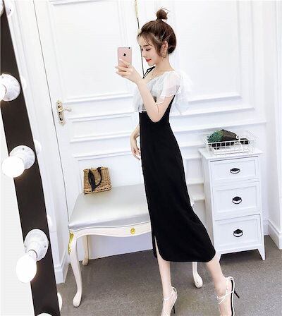 2色 キャバ ドレス ロング ロング丈 ワンピ ワンピドレス レディース 大胆 セクシー 黒 赤 ブラック 赤 無地 フリル ボタン おしゃれ きれいめ 可愛い 細身 色気 抜け感 キャバ嬢 バイカラ